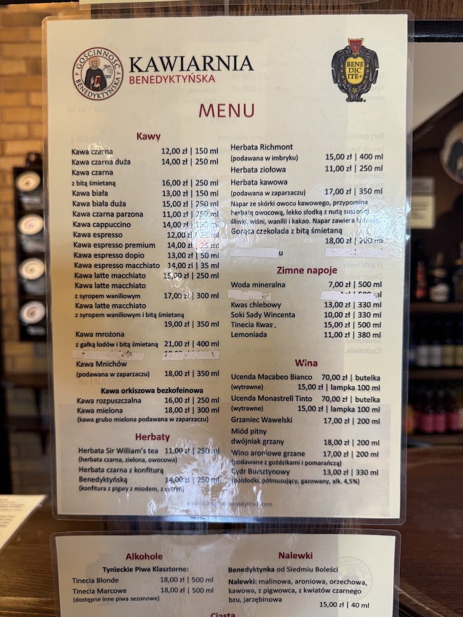 Kawiarnia Benedyktyńska Menu